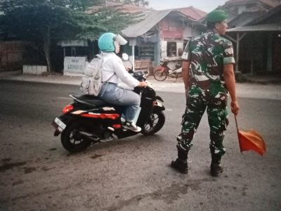 TNI Peduli, Koramil 1609 Juntinyuat Bantu Masyarakat Dan Anak Sekolah Menyebrang Jalan