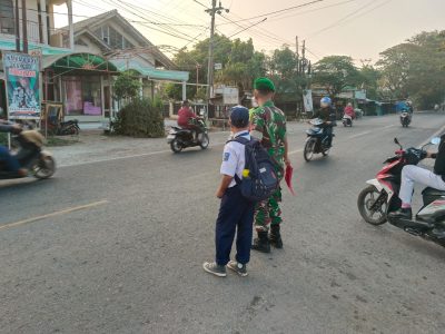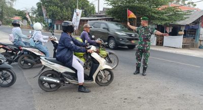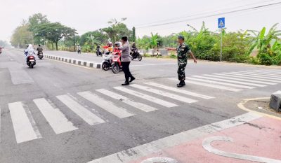 Warga Apresiasi Koramil 1610 Krangkeng, Kegiatan Rutin Bantu Masyarakat Menyeberang Jalan Raya