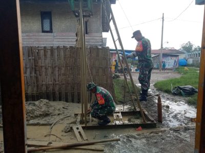 24news.id.-Indramayu-Jajaran Kodim 0616 Indramayu melaksanakan giat kerja Bhakti pembuatan Tiang/dudukan Tandon air bersih...