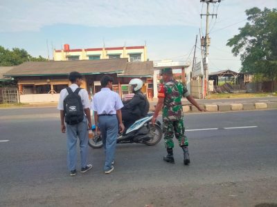 Rutinitas Pagi Hari,Koramil 1605 Sukagumiwang Bantu Anak Sekolah Menyebrang Jalan