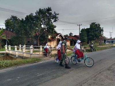 Peduli keselamatan lalau lintas, Koramil 1612 Lelea bantu menyeberangkan anak anak sekolah