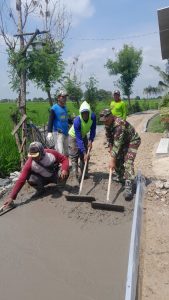 Babinsa Koramil 1611 Losarang Bantu pembangunan Pengecoran Jalan Desa Jumbleng