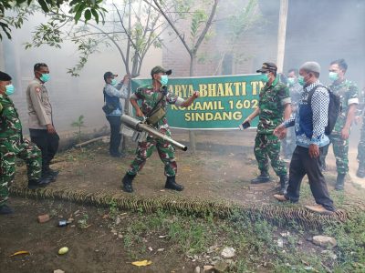 Aksi Nyata TNI, Personil Koramil 1602 Sindang Melaksanakan Fogging Mencegah Penyebaran Penyakit DBD