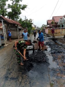 Kegiatan Karya Bakti TNI, Koramil 1603 Lohbener Melaksanakan Pembersihan Selokan Air di Blok Cangkring